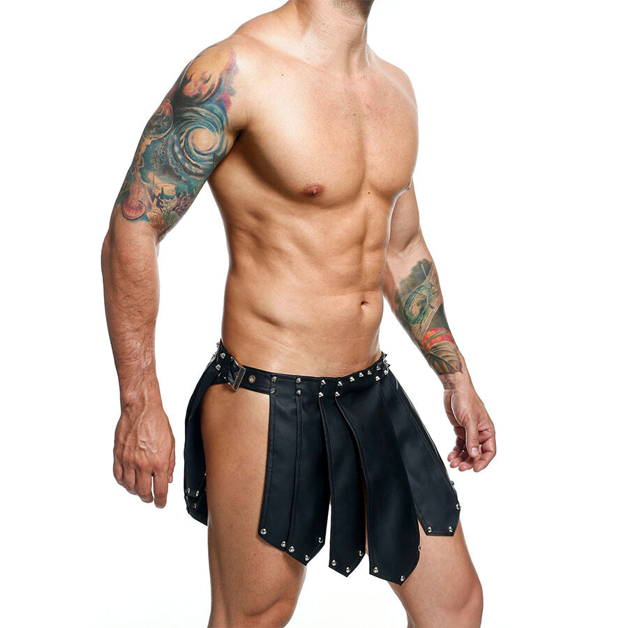 Reizen Sie Ihren Partner auf die bestmögliche Art mit dem Lederrock „Römische Kriegerin“. Seitlich offen. Dreieckiges Design vorne und hinten. Er ist eine bequeme und praktische Ergänzung für Ihr Schlafzimmer. Vollständig verstellbar und aus strapazierfähigem Kunstleder gefertigt, tragen Sie ihn tief für ein Kostüm, dem er nicht widerstehen kann!