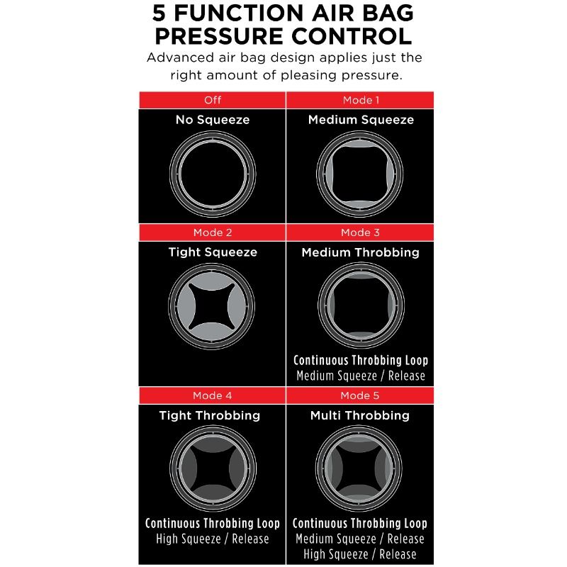 5-Funktions-Airbag-Druckregelung – Das fortschrittliche Airbag-Design übt genau den richtigen, angenehmen Druck aus. Zum Aktivieren drücken und zum Freigeben 3 Sekunden lang gedrückt halten.