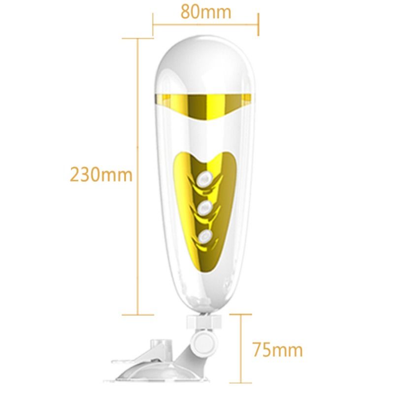 Darüber hinaus verfügt er an der Basis über einen Drucksaugnapf und haftet sicher auf jeder ebenen Fläche, sodass Sie freihändig masturbieren können. Es wird wie echter Sex sein!